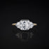 An Asscher cut diamond ring with fancy cut baguette shoulder detail, mounted in 18k white and yellow gold.