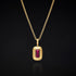 An elongated scissor cut garnet of 4.61cts mounted in a brushed 18k yellow gold pendant, the pendant loop designed so that it may slide onto any of our beaded Serpa necklaces, and it may also be worn on our heavy gold chain, as shown.