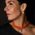 Inspired by the hot hues of Sicily, this natural, undyed, handwoven coral bead necklace has a summery exotic feel to it. This coral is superbly fine and is from the area of Siacca on the south-east coast, the beads themselves feel particularly soft against the skin. It is set with a heavy gold bespoke clasp in brushed 18k yellow gold, and shown in the pictures with a lavender tanzanite pendant, complimenting the vibrant orangey-peachy hues.